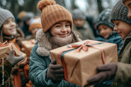 Obraz premium Volunteers Distributing Christmas Gifts to Children