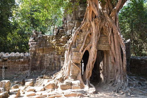 © Ed Harley, Obraz premium Vom Baum überwucherter Eingang zu einen Tempel