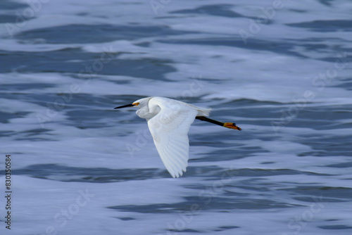 © Mrio, Obraz premium Voo rasante de uma garça-branca-pequena sobre a praia de Cordeirinho, Maricá, RJ