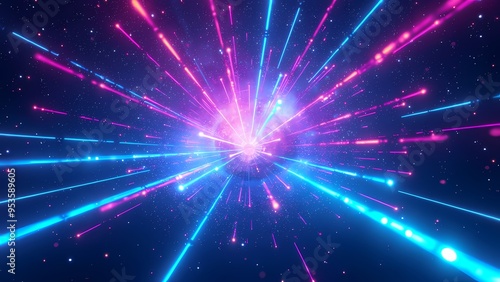 © Mishkat Uddin Rahat, Fototapeta premium Vortex of Swirling Blue Light Waves with Depth-Enhancing Particles Dark Space