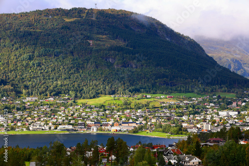 © Travel Photos, Obraz premium Vossevangen Town and Vangsvatnet Lake in Vestland, Norway