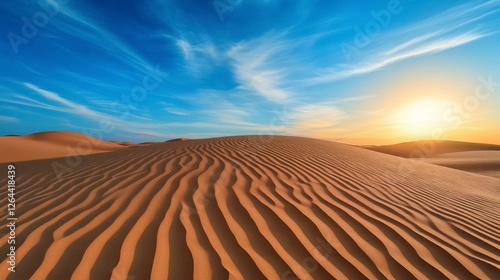 © Patchayanit , Naklejka premium Voxel Style Desert Landscape with Rolling Sand Dunes and Bright Sunlight under Blue Sky