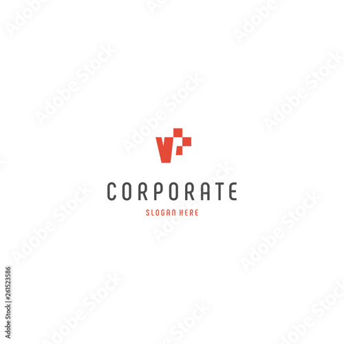 Obraz premium VP V P Pixel Letter Logo with Digital, VP logo initial letter design template...