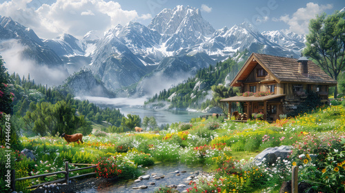 © Graphics.Parasite, Naklejka premium VR Farm Mockup with Animals and Crops in 3D