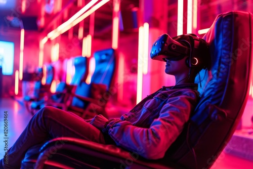 © Tanu, Obraz premium VR gaming experience in a high-end gaming lounge, AI generated