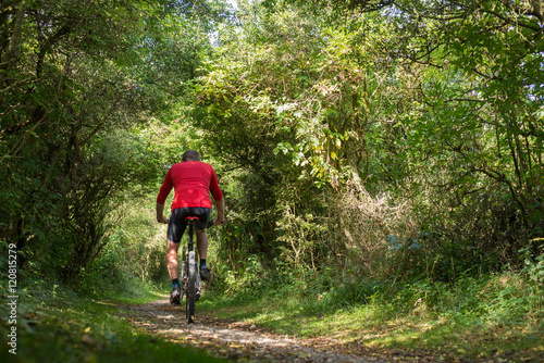 Obraz premium vtt dans les bois verts