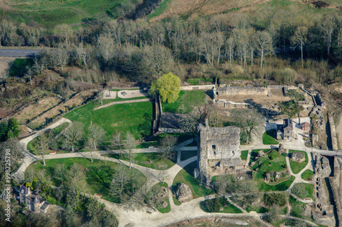 © Francois, Naklejka premium vue aérienne du château de Domfront en France