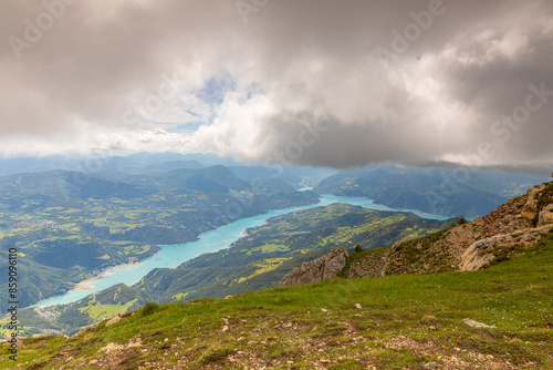 © rochagneux, Naklejka premium Vue aérienne du Lac de Serre-Ponçon et son barrage