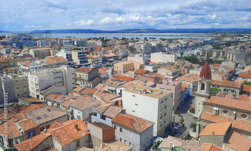 © Monique Pouzet, Obraz premium Vue aérienne sur la ville de Palavas-les-Flots, située dans le département de l'Hérault en France