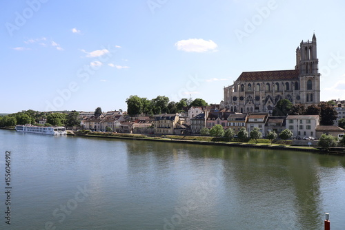 © ERIC, Obraz premium Vue d'ensemble de la ville le long de la Seine, ville de Mantes la Jolie, département des Yvelines, France