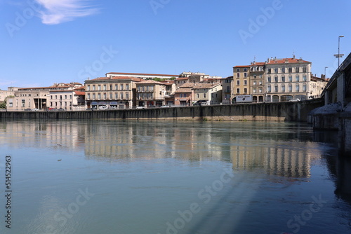 © ERIC, Fototapeta premium Vue d'ensemble de Romans le long de la rivière Isère, ville de Romans sur Isère, département de la Drôme, France