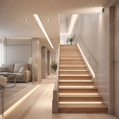 Fototapeta premium vue d'un escalier dans une maison design - IA Generative