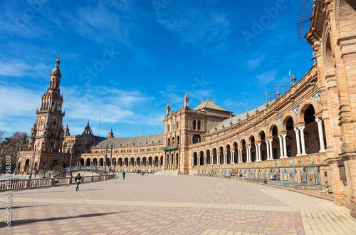 Obraz premium Vue d'une tour, du pont de la Place d’Espagne, Seville, Espagne