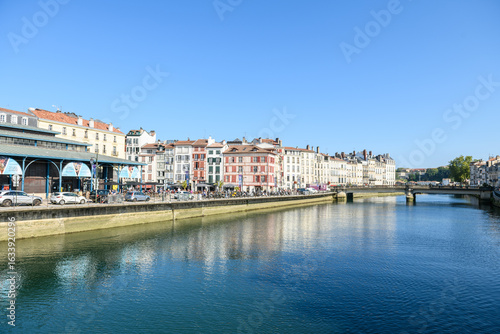 Fototapeta premium Vue des bâtiments longeant la Nive à Bayonne, Pays-Basque