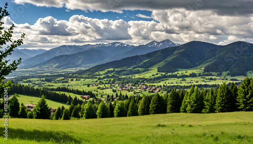 © SolarisKG, Fototapeta premium Vue panoramique des montagnes verdoyantes