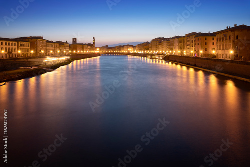 Naklejka premium Vue sur pise à l'heure bleu