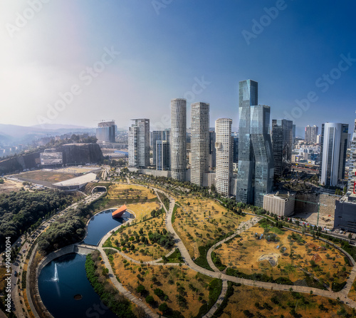 © Daniel.Garcan, Fototapeta premium Vuelo de dron en parque la mexicana santa fe, ciudad de México