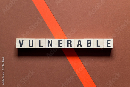 © Яна Василевская, Obraz premium Vulnerable word concept on cubes