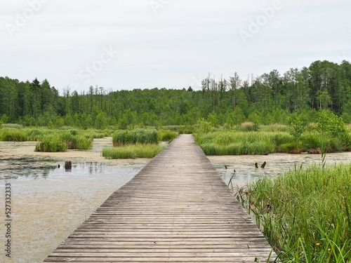 © pawel_ka_foto, Naklejka premium Vyzary, Sianozątka - spillway, wooden pier, wooden footbridge