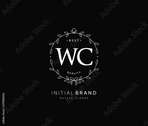 Fototapeta premium W C WC Beauty vector initial logo, handwriting logo of initial signature, wedding, fashion, jewerly, boutique, floral and botanical with creative template for any company or business.