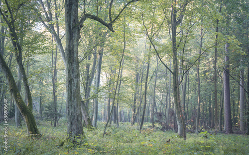 Obraz premium w lesie grądowym zaczyna się jesień,
