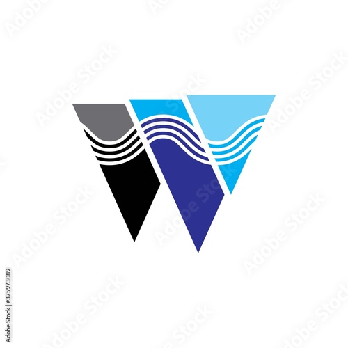 Naklejka premium W letter with Wave logo design vector