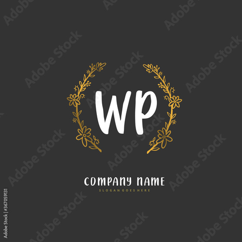 Naklejka premium W P WP Initial handwriting and signature logo design with circle. Beautiful...