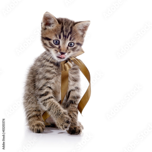 © Azaliya (Elya Vatel), Fototapeta premium W paski oblizane usta kotka z kokardką.
