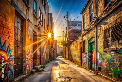 © Sandra, Fototapeta premium W spalonej słońcem alejce wyblakła Nolana rozkwita pośród żywej mozaiki graffiti, jej delikatne płatki