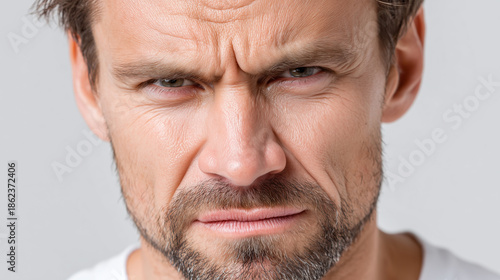 © LElik83, Obraz premium Wütender Mann mit intensivem Blick – Stress, Aggression und starke Emotionen im Gesicht