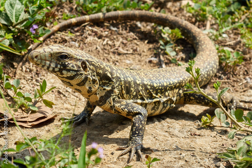 Obraz premium Wachsamer kleiner Leguan von schräg vorne