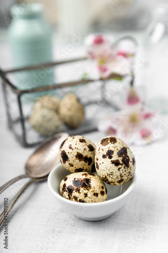 Fototapeta premium Wachteleier in einer Schale