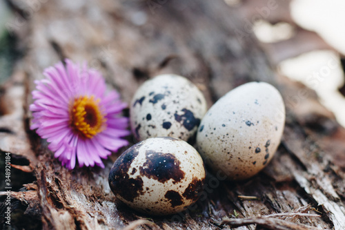 Obraz premium Wachteleier mit Blume