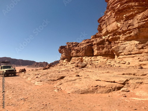 Fototapeta premium Wadi Rum, Jordan, November 2019 - A canyon with a mountain in the desert