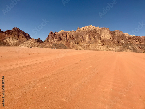 Fototapeta premium Wadi Rum, Jordan, November 2019 - A man riding on top of Wadi Rum