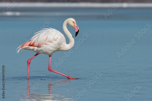 © The 2R Artificiality, Obraz premium Wading white bird exploring shallow waters during low tide in winter