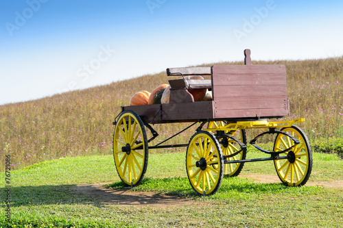 © det-anan sunonethong, Fototapeta premium Wagon in large pumpkin farm