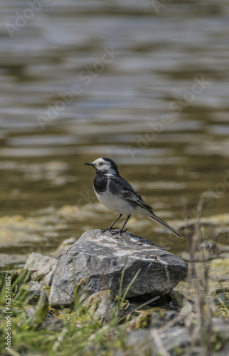 Fototapeta premium Wagtail bird near lake in spring