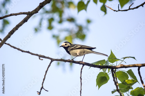 Naklejka premium Wagtail sitting (Motacilla alba) on tree branch in the spring. The northeast...