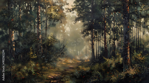 © CreativeCreations, Fototapeta premium Wald im Gegenlicht