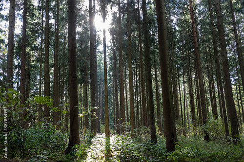 Obraz premium Wald im Gegenlicht bei tiefstehender Sonne