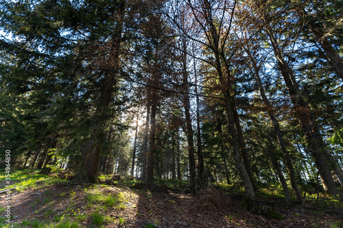 Fototapeta premium Wald mit Sonne im Bayerischen Wald