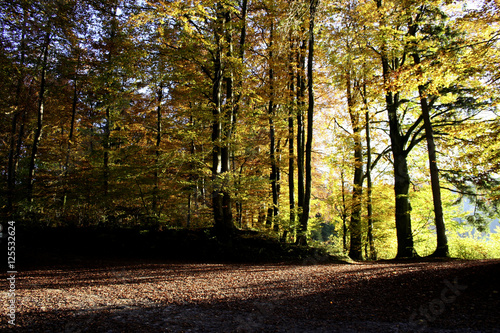 © stephie0108, Obraz premium Wald mit Sonneneinstrahlung