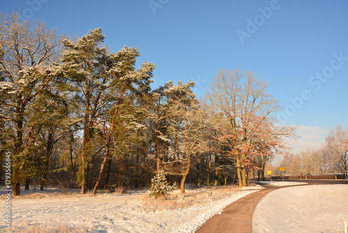 © Alexander, Fototapeta premium Wald, Radweg, Feld, Himmel, Schnee, Winter