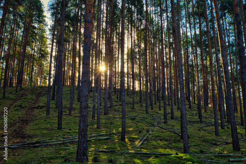 Fototapeta premium Wald - Sonnenstrahlen - Beautiful - Rays - Sunlight - Forest - Green - Silent - Summer - Morning - Landscape - Scenic - Woodland - Nature - Concept - Ecology - Environment - Autumn