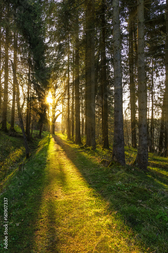 © marcus_hofmann, Obraz premium Wald vom Sonnenlicht durchflutet