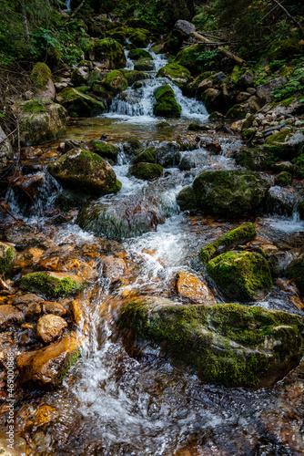 Obraz premium Wald, Wasserfall, Bach, Fluss, Steine, Bachlauf, Langzeitbelichtung