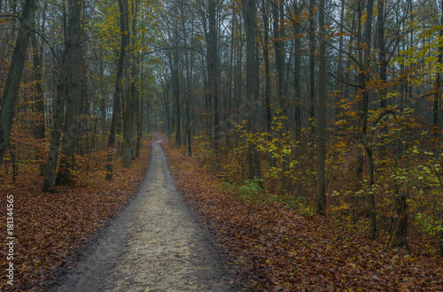 Fototapeta premium Wald Weg Herbst Dunkel Abend Dämmerung
