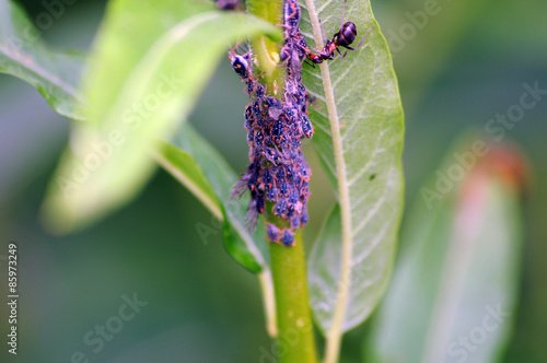 Fototapeta premium Waldameise schleckt Honigtau