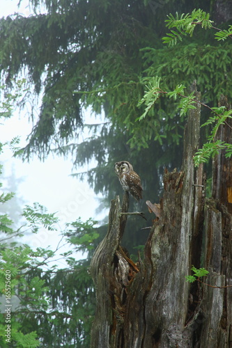 © liha100, Obraz premium Waldkauz auf einen Baumstumpf